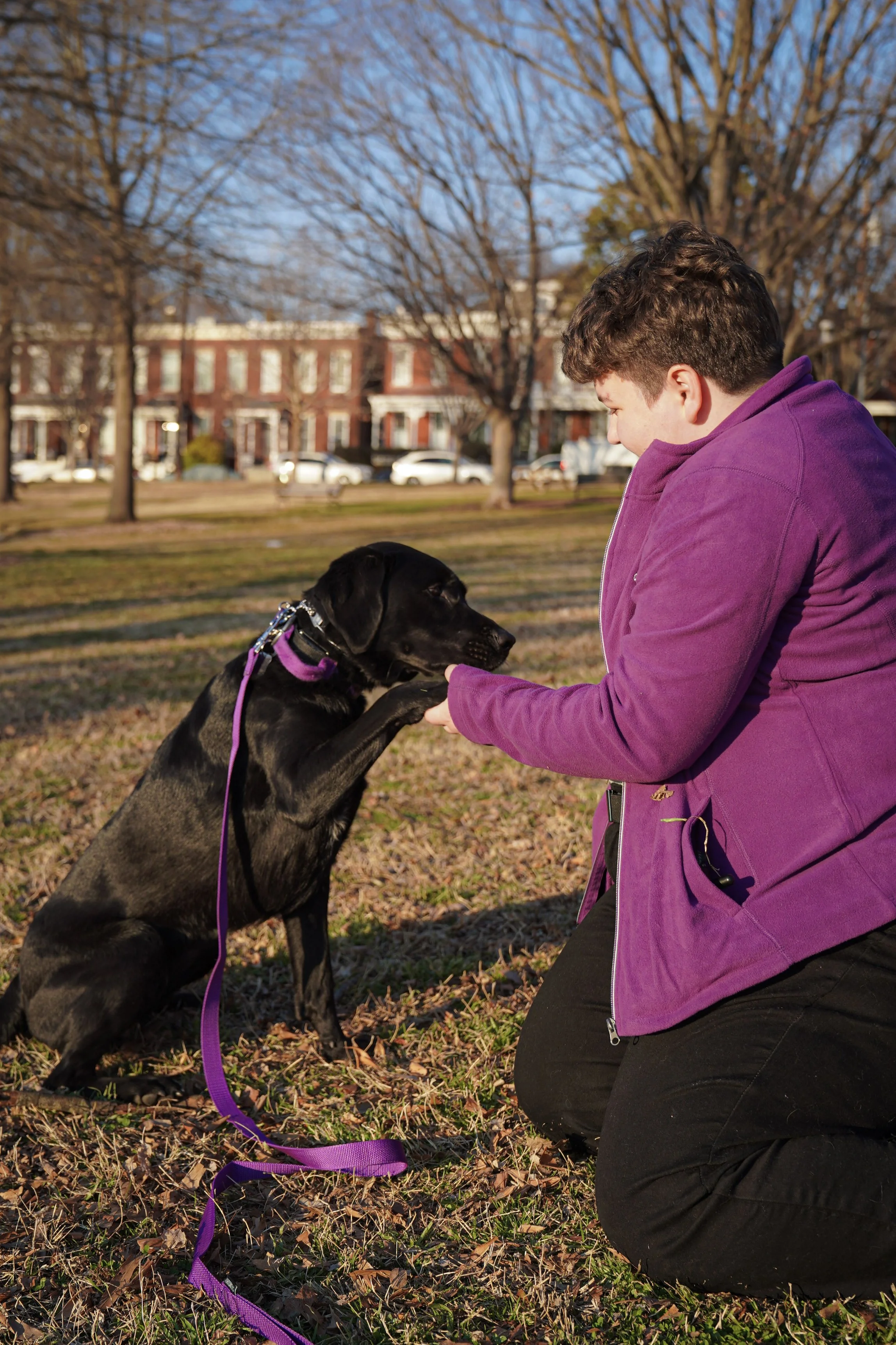 Lore is a proudly queer, disabled, and neurodivergent individual who has been training dogs in a professional capacity for nearly three years. Their goal is to create an affirming space for owners to connect with, learn with, and teach their dog. Lore approaches training with a balanced modality, using both “yes” and “no” to optimize communication with your dog. When they’re not training, they enjoy spending time with their partner and their black lab, Ruthie, as well as creating artwork using multiple mediums.